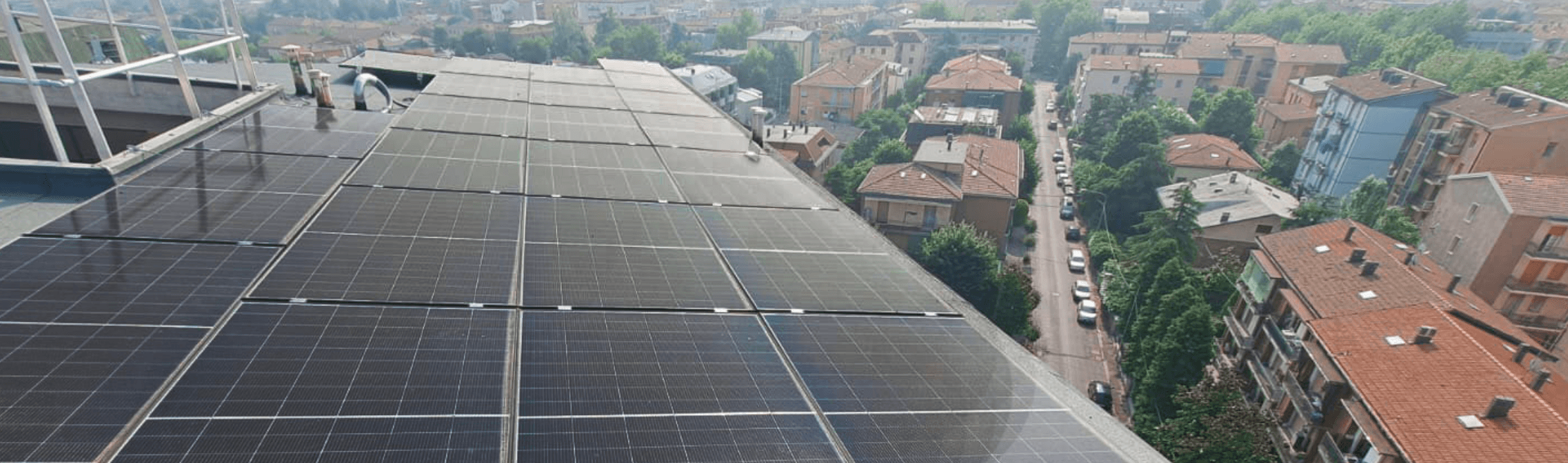 Sul tetto di uno degli edifici è stato installato un impianto fotovoltaico da 19,76 kWp1. Questo è a servizio delle parti comuni dei tre fabbricati e ha uno scopo preciso: alimentare, durante le ore diurne, una pompa di calore dedicata esclusivamente alla produzione di acqua calda sanitaria per l'intero complesso. Questa sfrutta l'energia solare, massimizzando l'autoconsumo e contestualmente riducendo la dipendenza dalla rete elettrica, i costi energetici e le emissioni.